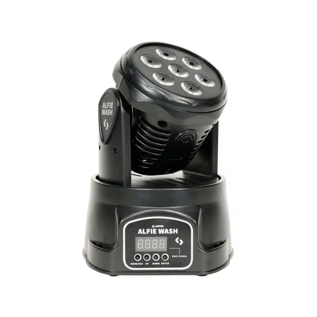 Alfie Washes un cabezal móvil tipo wash ultra-compacto con un ángulo de haz de 20º que cuenta con 7 potentes LEDs RGBW de 8W. Alfie es la solución ideal para cualquier aplicación que requiera de una capacidad de operación silenciosa. Además, gracias a su bajo peso se convierte en la herramienta perfecta para aplicaciones móviles.