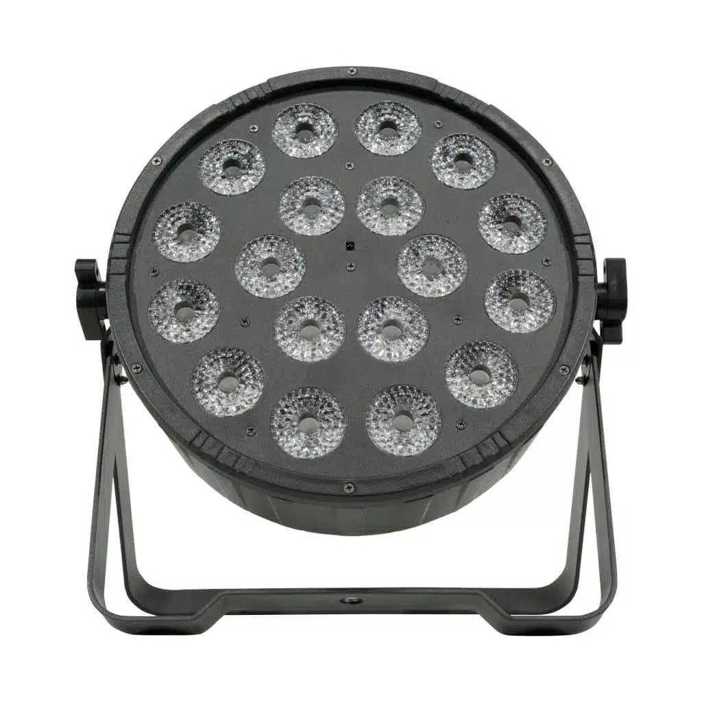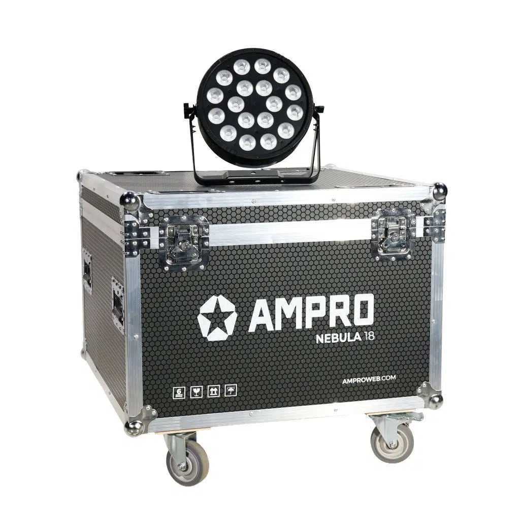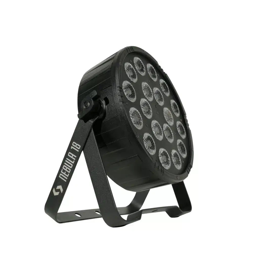 Nebula 18 es un bañador profesional que cuenta con 18 LEDs RGBAW+UV de 12W, con un ángulo de haz de 25º. Su tecnología LED de seis colores permite una mezcla suave sin sombras multicolor, logrando innumerable cantidad de colores profundamente saturados. Nebula 18 tiene dimmer lineal para todos los colores, efecto UV, función estrobo, 33 macros de color y una función de balance de blanco que lo convierte en una opción ideal para aplicaciones de tipo audiovisual. Codigo certificado seguridad eléctrica: MHL-120